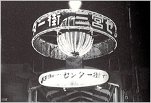 神戸三宮センター街の誕生は、1946年。 敗戦の焦土の中に芽生えました。 古くからこの地で商いをしていた人々によって、いち早く新しいショッピングセンターを作ろうという動きが出始め、意欲に燃えた有志達が日夜相寄り協議を重ね出来た商店会がセンター街の最初のきっかけです。 この時は、なじみのない通りである事と戦後の統制経済下のため、正規ルートでの商品での販売は品薄で魅力に乏しく、いつも閑古鳥がないていました。 人々をセンター街へ呼ぶ方法はないかと街の人々が行なったお客さまの誘致の方法として、カタチになっていくのが、松竹映画でも撮影に使われた夜間照明の街路灯、鈴蘭燈、回転アーケード、アーケードなどです。 このように神戸三宮センター街は、少しずつ形作られていきました。